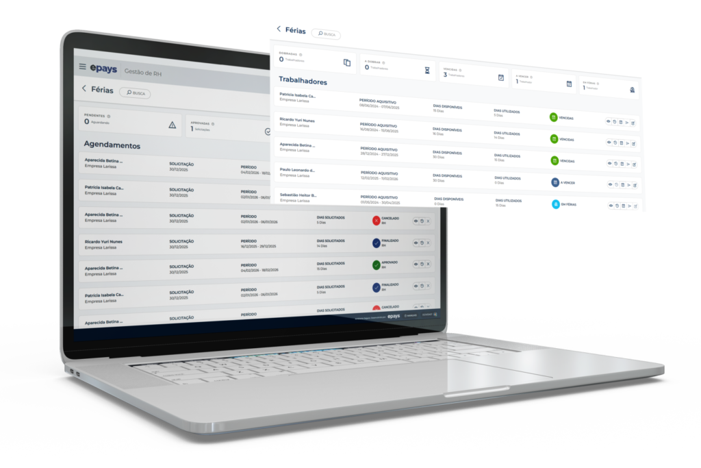 O Módulo de Gestão de Férias do Epays centraliza o controle dos períodos aquisitivos, saldos e agendamentos de férias em um único sistema, eliminando planilhas, erros manuais e riscos trabalhistas.